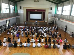 1限目に後期始業式となかよし班集会を行いました。