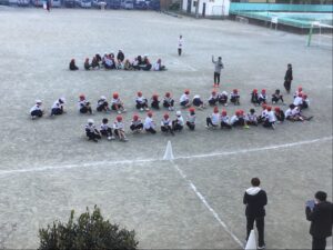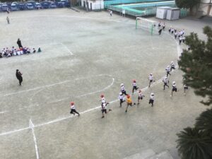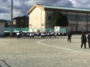 青空の下でマラソン記録会の試走を行いました。 子どもたちは寒さに負けず、元気いっぱいにスタートしました。