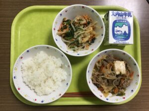 ホーム > 日々の活動の様子 1月30日(金) 今日の給食は、ちゃちゃもランチです。 メニューは、ご飯、牛乳、松阪牛のすき煮、ほうれん草と油揚げの和え物です。 たくさんの子どもたちが、今日の日を楽しみにしたいたのではないかと思います。 タグ:給食 シェアする Twitter でシェア はてなブックマークに保存 LINE でシェア Facebook でシェア Pocket に保存 Feedly で購読 関連投稿 日々の活動の様子 令和2年度 第三小学校日課表 日々の活動の様子 6年生を送る会がありました。 日々の活動の様子 3年生・4年生社会見学だより 日々の活動の様子 授業風景 日々の活動の様子 しっかり! ていねいに! 日々の活動の様子 みんなやさしいんです。 前の投稿 1月29日(木) 次の投稿 2月2日(月)